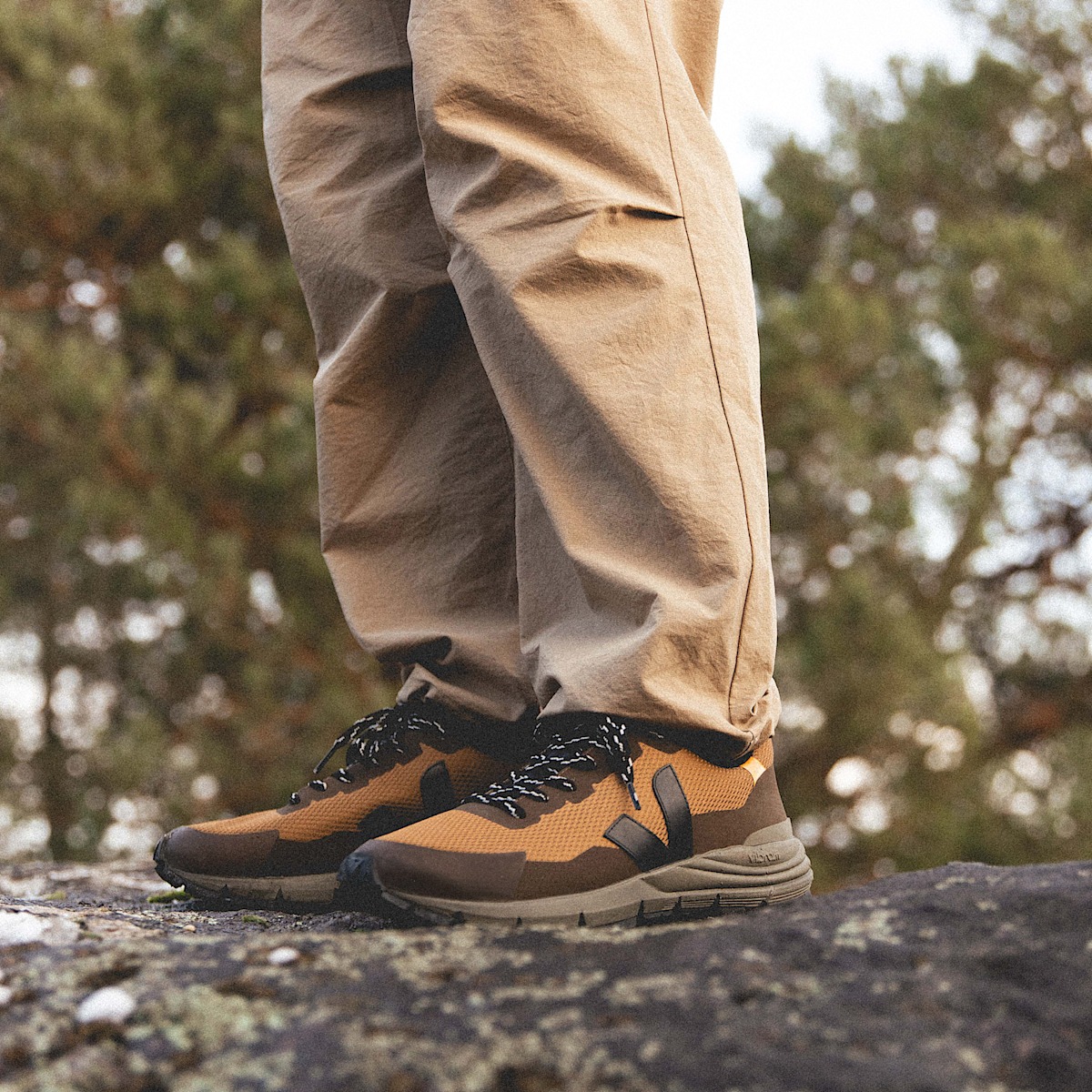 Outsole: Amazonian rubber (30%), mineral silica (25%), synthetic rubber (24%) and others (21%). Made with Vibram